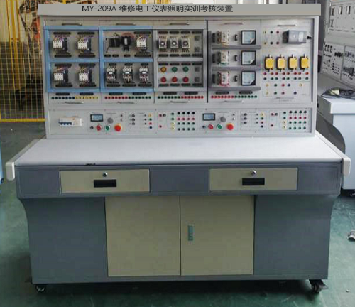 MY-209A 電工儀表照明實訓台-是按照勞動和社會保障部頒發的“工人等級標準”和“職業技能鑒定”的要求而設計(jì)的,該裝置(zhì)集理論、實際操作和考(kǎo)核鑒定為一體。可用於勞(láo)動職業技能鑒定部門、大中專院校、職校、技校對初、中、高級維修電工(gōng)技能考核的理想設備。