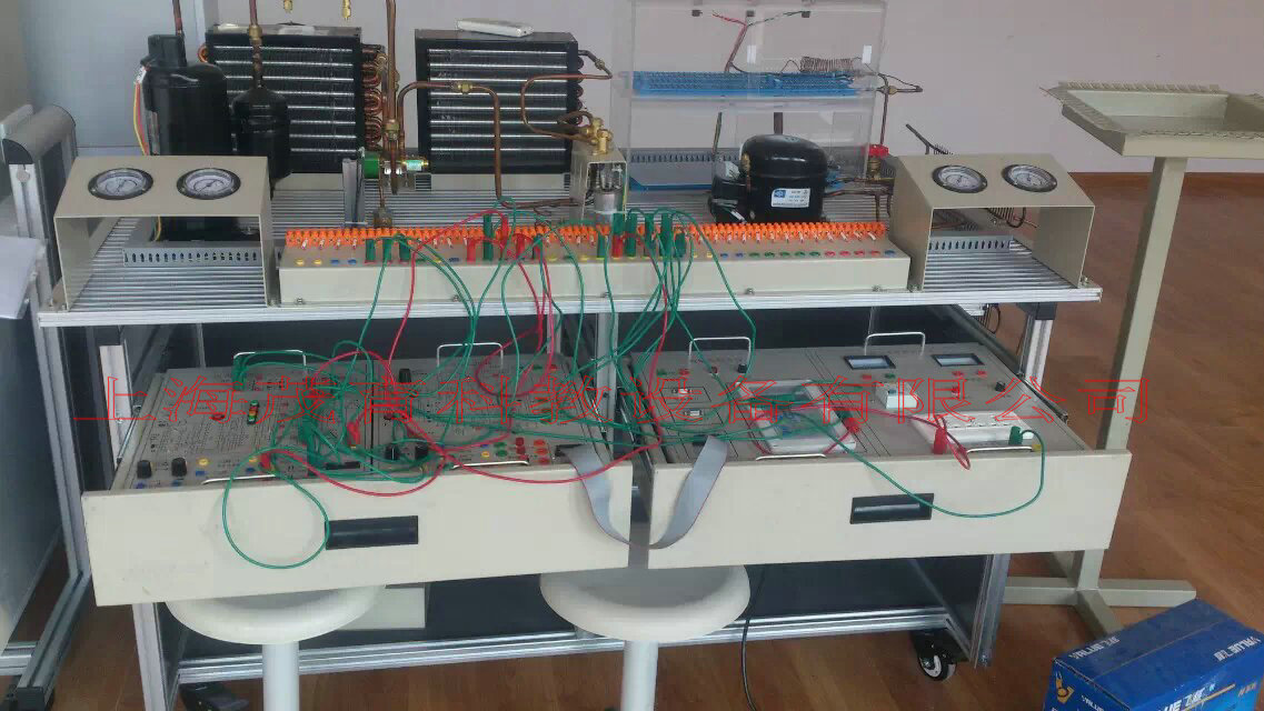 2、導軌式(shì)鋁合金安裝平台由(yóu)標準規格的鋁合金工業型材組成,作為學生操作訓練(liàn)的平台,上麵安裝有空調係(xì)統部件和冰箱(xiāng)係(xì)統部件。