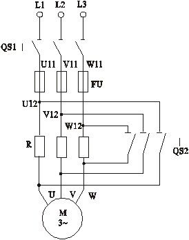 電阻(zǔ),起到降壓(yā)作用(yòng),所(suǒ)以這時加到電動機定子繞組上的電壓低於額定電壓,這樣就(jiù)限製了起動電流。隨著電(diàn)動機的起動,轉速逐漸升高。當電動機轉速接近(jìn)額定轉速時,立即合上QS2,將電阻R短接,定子繞組上的電(diàn)壓(yā)便上升到額定工作電壓(全壓)運行,使電動機處於正常(cháng)運轉狀態。