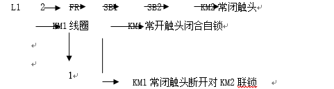 (2)反轉控製 要使電動機改變轉向(即由正轉變為反轉)時,應先按下停止按鈕SB1,使正(zhèng)轉控製電路斷開,電動機停轉,然後才能使(shǐ)電動機反轉,為什麽(me)要這樣操作呢?因為反轉控製回路中串聯了正轉接觸器KM1的(de)常閉觸頭。當KM1通電工作時(shí),它是斷開的,若這時直接按反轉按鈕SB3,反轉(zhuǎn)接觸器KM2是無法(fǎ)通電的,