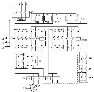在掛箱上選定QS、FU1、FU2、KM1、KM2、FR、SB1、SB2、SB3及XT等器件。接線按圖(C)所(suǒ)畫的連續線表示的單元接(jiē)線圖接線,其中動(dòng)力(lì)電路用黑色線,交流控製電路用紅色線,實線表示明配線,虛線表示(shì)暗(àn)配線(即(jí)板後接線),安裝與接線(xiàn)後應符合第(dì)二章2-1的(de)要求。