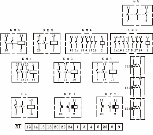 KT1及KT2的斷(duàn)電延(yán)時調節分別為8秒,15秒。確(què)認接(jiē)線(xiàn)無誤後,可分別通(tōng)入DC220及AC380V,分別按按鈕開關SB2、SB3、SB1,控製電路應能正常工作,若工作不正常,則應分析(xī)並排除故(gù)障。
