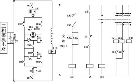 圖1:直流電動機正(zhèng)反轉(zhuǎn)帶能耗控製線路