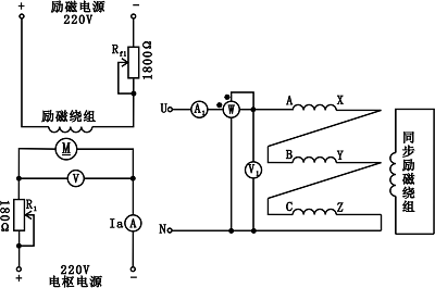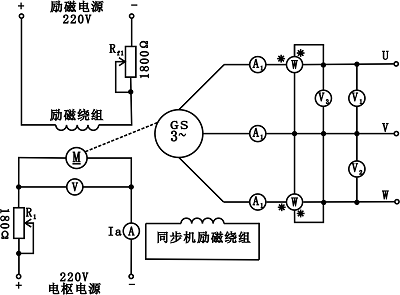 (2)、按照上述起動方法起動校正(zhèng)直流測(cè)功機,並使轉速達到1500r/min。然後調節同步發電機的(de)勵磁電阻R