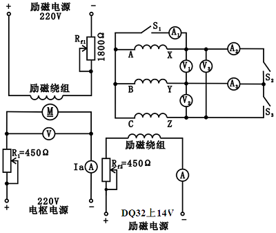圖(tú)3三相同步發電機(jī)不對稱(chēng)運行實驗接線圖
