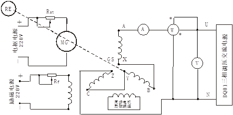 (4)斷開電樞電源和勵磁電源,使直流電機MG停機。再調節調壓器(qì)旋鈕,給三相(xiàng)同步電機加一電壓,使其作同步電動機起(qǐ)動,觀察同(tóng)步電機轉向(xiàng)。