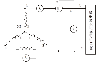 (1) 按圖2接線,將GS的三(sān)相電樞(shū)繞組首尾依次(cì)串聯,接至單相交流(liú)電源U、N端上。