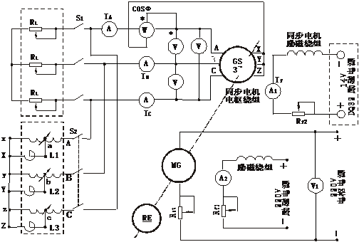 (1) 在圖(tú)5-1中接入功率因數(shù)表,調節可變負載電阻使阻值達最大,調節可變電抗器使電(diàn)抗值達最大值。