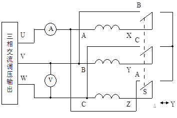 2) 三相調壓(yā)器(qì)退到零位,開關S合向左邊。自耦變壓(yā)器選用DQ28掛箱。
