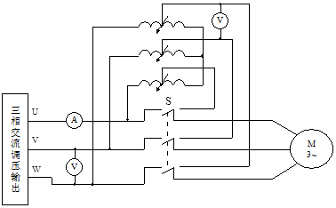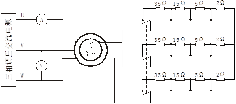 2) 合上電源開關,電機空(kōng)載起動, 保持調(diào)壓器的輸出電壓為電機額定電壓220伏,轉子附加電(diàn)阻調至零。