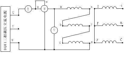 1) 按(àn)圖3-8接線。A、X接電源的U、V兩端子,Y、Z短接。
