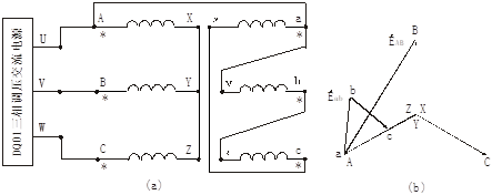 (α)接線(xiàn)圖 (b)電勢相量圖