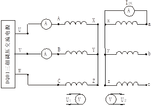 按圖3-14接線。被(bèi)試變壓器(qì)選用三相心式變壓器。將交流電壓調到輸出電壓為零的位置,接通電源(yuán),逐漸增加外施電壓, 直至副方短路電流I