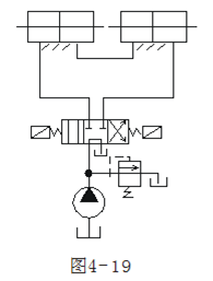 動作開始時(shí),第一個液壓缸回油腔(qiāng)排出的油被送入第二個液壓缸的進油腔,若兩缸的有效工作麵積相等,則應能實現同步運(yùn)動。這種回路結構簡單、效率高,能適應較大的偏載,但泵的供油壓(yā)力較高,同步精度受(shòu)兩缸製造精度。內部泄露(lù)和(hé)空(kōng)氣(qì)混入等因素影響。該回路是速度同步。