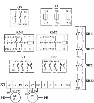 | M1、M2 | 三相鼠籠式異步電動機 |