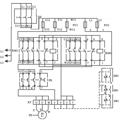 | M | 三(sān)相鼠籠式異步電動機 |