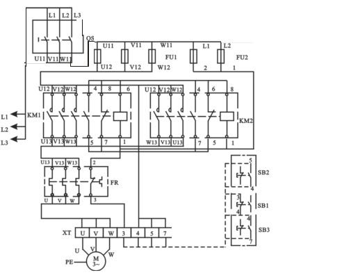 仔細檢查確認接線無誤(wù)後,接通交流電源,按下SB2,電機應正轉(電機右側的軸伸端(duān)為順時針轉,若不符合轉向要求,可停機,換接電機定(dìng)子(zǐ)繞組任意兩個接線即可)。按下SB3,電機仍應正轉(zhuǎn)。如要電機反(fǎn)轉,應先按SB1,使電機停轉,然後再按SB3,則電機反轉(zhuǎn)。若不能正常工作,則應分析並排除故障,使線路能正常工作(zuò)。