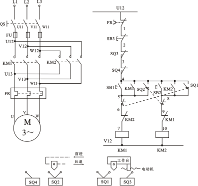 | SQ1、SQ2 | 行程(chéng)開關 | LX19-111 | 觸動複(fù)位 | 2 | |
