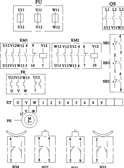 | SQ3、SQ4 | 行(háng)程(chéng)開關(guān) | YBLX-19/001 | 自動複位 | 2 |