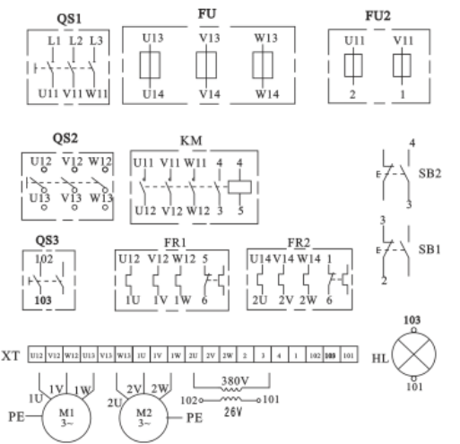 | M1、M2 | 三相鼠籠異步電動機 |