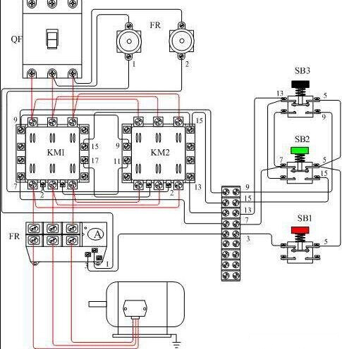 二、反向啟動:1、合上空氣開(kāi)關QF接通三相電源2、按下反向啟動按(àn)鈕SB2,KM2通電吸合並通過輔助(zhù)觸點自鎖,常開主觸頭閉(bì)合換接了(le)電動機三相的電源相序,這時電動機的相序(xù)是L3、L2、L1,即(jí)反向運行。