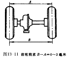 所谓前束(shù)是指两前轮轴前轮距A小于前轮轴后轮距B的差值。其(qí)标准前束值为B-A=0-3毫米,如(rú)图(tú)所示。