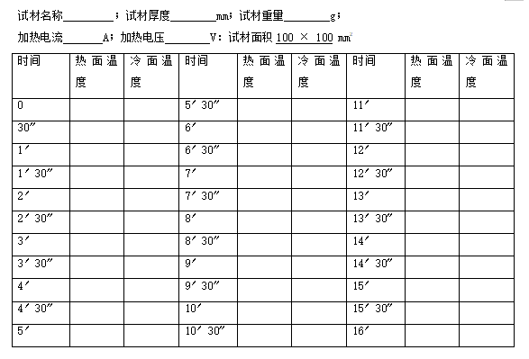3.根據實驗數據,繪出溫度變化曲線,計算(suàn)出試材的導熱係數、比熱(rè)容和導(dǎo)溫係數。