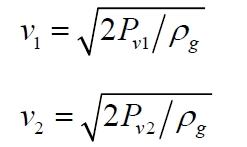 式中,v1、v1 分別為除塵器進、出口管道氣速,m/s;Pv1、Pv1 分別為除塵(chén)器進、出(chū)口管道斷麵平均動壓,Pa;ρg 為氣體密(mì)度,kg/m3。