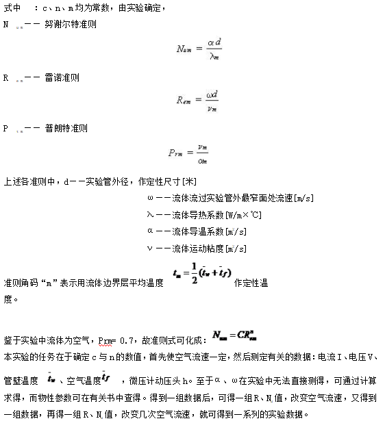 2.測定(dìng)空氣橫向流過單管表麵時的平均放熱係數α,並將實驗數據整理成準則方程式(shì);