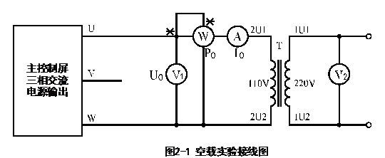 c.然後,逐次降低電源電壓,在1.2~0.5UN的範(fàn)圍內;測取變壓器的U0、I0、P0,共取(qǔ)6~7組數據,記錄於表2-1中。其中U=UN的點必須測,並在該點附近測的點應密些。為了(le)計(jì)算變壓器的變化,在UN以下測(cè)取原方電壓的同時測取副方電壓,填入表2-1中。