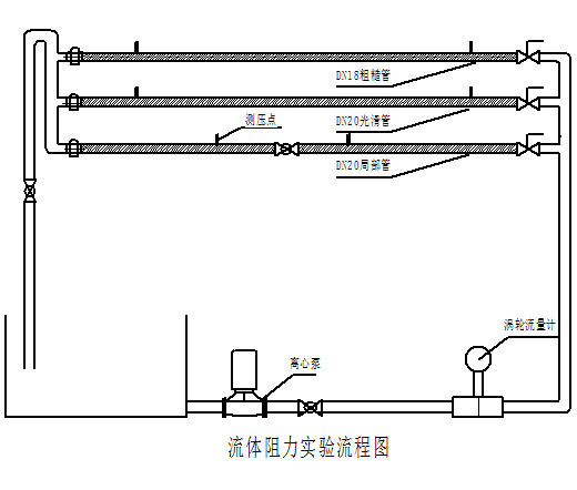 和u的(de)實驗測定值,可計算λ和ξ,在等溫條件下,雷諾數Re=duρ/μ=Au,其中A為常數,因此隻要調節管路流量,即可得到一係列λ~Re的實驗(yàn)點,從而繪出λ~Re曲線。| 序號 | 流量(m3/h) | 光(guāng)滑(huá)管壓差(mmHg) | 粗糙管壓差(chà)(mmHg) | 局部管壓差(mmHg) |