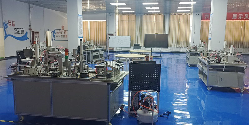 實驗目的: 1、氣動係統的安裝與調試項目: 選用該裝置配置的單出杆氣缸、單出雙杆氣缸、旋轉氣缸等氣動執行元件(jiàn)和單控電磁換向閥、雙控電磁換向閥和磁性開關(guān)等氣動控製元件,可(kě)完成下列氣動技術的(de)工作任務: 項目一 氣動方向控製回路的安裝; 項目二 氣動(dòng)速(sù)度控製回路的安裝; 項目三 擺動控製回路的安裝; 項目四(sì) 氣動順序控(kòng)製回路的安裝; 項目五 氣動機(jī)械手(shǒu)裝置的安裝; 項目六 氣動係統安裝與調試; 2、電氣(qì)控製電路的安裝和PLC程序編寫(xiě)項目: 選用該裝置配置的PLC模塊、變頻器模塊和指令(lìng)開關、傳(chuán)感器等,可完成下列PLC應用技術工作任務: 項目七 電動機正反轉控製電路的連接與控製程序編寫(xiě); 項目八(bā) 電動(dòng)機調速控製電路的連接與控製程序編寫; 項目九 氣動方向控製程序編寫; 項(xiàng)目十 氣動順序動作控製(zhì)程序編寫; 項(xiàng)目十(shí)一 氣動機械手(shǒu)控製程序編寫; 項目十(shí)二(èr) 皮帶輸送機(jī)控製程序編(biān)寫; 項目十三 機電一體(tǐ)化設備控製程序編寫; 項目十四 自動生產線(xiàn)控製程(chéng)序編寫。 3、機電設備安裝與調試項目 選用該裝置配置的機電一體化設備部件、PLC模塊、變頻器模塊和指令開關、傳感器等,可完成下列機電(diàn)設備安裝和機電一體化技術的工作任務: 項目十五 傳動(dòng)裝置同軸度的調整; 項目十六 皮帶輸送機的安裝與(yǔ)調整; 項目十七 搬運機械手設備安(ān)裝與調試; 項(xiàng)目十八 物(wù)件分揀設備的安裝與調試; 項目十九 送料設(shè)備的安(ān)裝與調試; 項目(mù)二十(shí) 自動生(shēng)產線設備安裝與調試。 4、自動控製係統安裝與調試項(xiàng)目 選用該(gāi)裝置(zhì)配置的(de)機(jī)電一體化設備部件、PLC模(mó)塊(kuài)、變頻器模塊和指(zhǐ)令開(kāi)關、傳感器(qì)等,可(kě)完成下列機電設(shè)備安裝(zhuāng)和機電一體化技術的工(gōng)作任務: 項目二十一 多種傳感器的安裝與調試; 項目二十二 機械手的自動控製; 項目二十(shí)三 皮(pí)帶輸送機的自動控製; 項目二十四 機電一體化設備的自動控製(zhì); 項目二十五 PLC控製係統的安裝與調試; 項目二十六 自動生產線的安裝與調(diào)試。 5. PLC工業通訊網(wǎng)絡的安裝及調試(shì) 係統選(xuǎn)用三菱PLC主控製器,配合FX1N-485BD網絡模塊,基於本網絡通信功能,可完成下列工業現場總線通信技術訓練任務(wù): 項(xiàng)目二十七N:N網絡的硬件連接、調試 項目二十八N:N網絡參數設(shè)置、調試 項目二十九基於多台PLC的複雜網絡數(shù)據讀寫程序編(biān)寫與調試 |