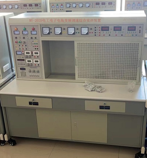 一、MY-202D 網孔型(xíng)電工電子電力(lì)拖動變頻調(diào)速PLC實訓裝置為配合職業教育和就業人員實際(jì)操作、培(péi)訓、鑒定的需求,設備(bèi)綜合了大中專院校(xiào)、職業院(yuàn)校、技工學校的《電工技能訓練》《電工實訓》《電氣控製(zhì)技術》《電力拖動控製線路與技能訓練》《電機及拖動基礎》《工廠繼電器接觸控製》《PLC原理及應用技術》《變頻原理及應用技術》《電子技能訓(xùn)練》等相關科目的實驗及實訓教學內容而研發。本裝置電工部分(fèn)采用(yòng)網孔板(bǎn)結構,訓練與鑒定接近工業現場(chǎng),增加元器件即可增加實訓項目,可(kě)擴展性強。裝置(zhì)設置多重科學安全保護措施,確保設備和操作者人身安全,非常適合各大中專院校、職業學院、技工學(xué)校和各類(lèi)培訓機(jī)構訓(xùn)練學生電(diàn)工電(diàn)子基本技能、專業技能和(hé)變頻(pín)器、PLC綜合技能(néng),也可進行電工等級考核(hé)和技能鑒定。