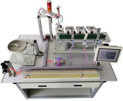 實訓裝(zhuāng)置台架為鋁合金導軌式,實訓考核裝置PLC模塊(kuài)的I/O 端子、變(biàn)頻(pín)器的接線端子(zǐ)、各常用模(mó)塊與PLC的連接端子,均(jun1)與安全插座連接,使用帶(dài)安全插(chā)頭的導線進行電路連接;各(gè)指令開(kāi)關、光電開關、傳感器(qì)和指示元件的電路,則通過端子排進行連接。插拔線連接電路與端子牌(pái)連接電路相結(jié)合,既保(bǎo)證學生基本技能的訓練、形成和鞏固,又保證電路連接的快速(sù)、安全和可靠。