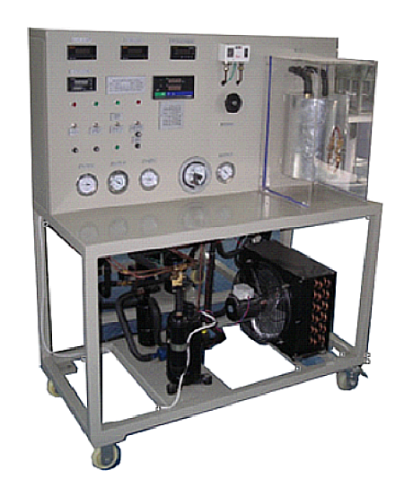 本裝置采用蒸汽壓縮式製冷(lěng)循環係統,配備製冷(lěng)壓縮機、不鏽鋼冷凝器、蒸發器等製冷係統真實部件,並設(shè)有彩(cǎi)色控製屏、製冷劑流量調節控製器,電子膨脹閥,渦輪流量(liàng)計、壓力變送(sòng)器、電(diàn)壓、電流、功率、合相有功(gōng)功率、各相無功功率、合相無功功率、各相視在功率、合相視在功率、采集器。不但能開設製冷壓縮機性能(néng)參數的測定實訓,還能進行製冷循環基本原(yuán)理的演示實訓(xùn)。適用於職業院校製冷專業相關(guān)課程的教學實訓。