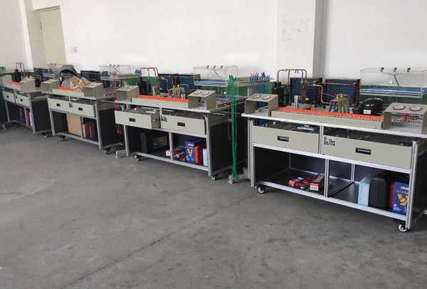 現代製冷與空調(diào)係統(tǒng)技能實訓裝置-是(shì)專門為職業院校製(zhì)冷類專業而研製(zhì)的製冷製熱實訓設備,根據製冷製熱類行業中空調與冰箱(xiāng)維修技(jì)術的特點,針(zhēn)對空調和冰(bīng)箱的電氣控製以(yǐ)及製冷係統、電氣控製係統、係統調試、故障診斷等特點進行設(shè)計(jì)。強(qiáng)化了學生對空調冰箱係統管路的(de)安裝與維修係統調(diào)試等綜合職業能力。空調實驗台由空調(diào)係統模塊,冰箱係統(tǒng)模塊,電源及儀(yí)表模(mó)塊,空調電氣控製模塊,冰箱(xiāng)電子溫控電氣控製模塊,冰箱智能溫控電氣控製模塊等組成(chéng)。通過設備(bèi)進(jìn)行項(xiàng)目訓練(liàn),能提高學生的(de)動手操作能力,計劃組織能力,製冷係統的調試安裝能力(lì),電氣控製電路維修能力等(děng)是現代(dài)製冷製熱技能實訓的必要工具(jù)。