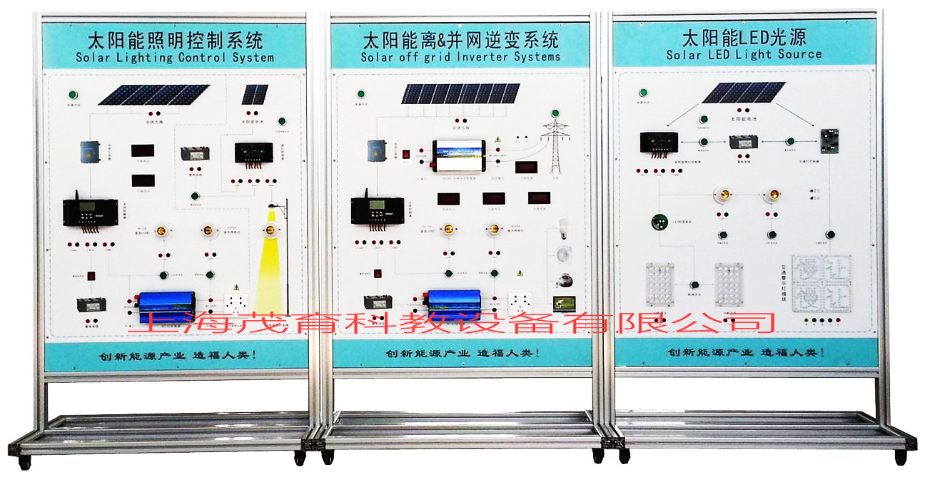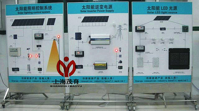 三、光伏發電係統集成教學演示係統,光伏發電係統集成教學演示裝置,光(guāng)伏發(fā)電係統集成(chéng)教學演示設備太陽能LED光源係統變換過程演示: