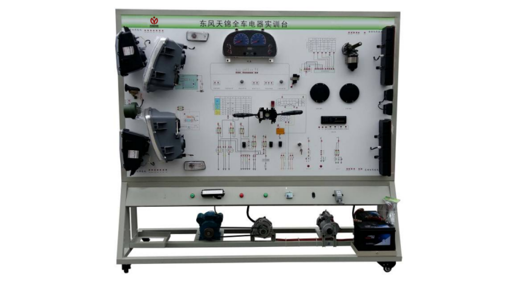 該設備采用 全新 東風天錦 柴油機整車電器實物為基礎,充分展示汽車儀表係統(tǒng)、燈光係統、雨刮係統、喇叭係統、發動機電器係統、起動係統(tǒng)和充電係統(tǒng)等汽車電器各係統的組成結構和工作過程。