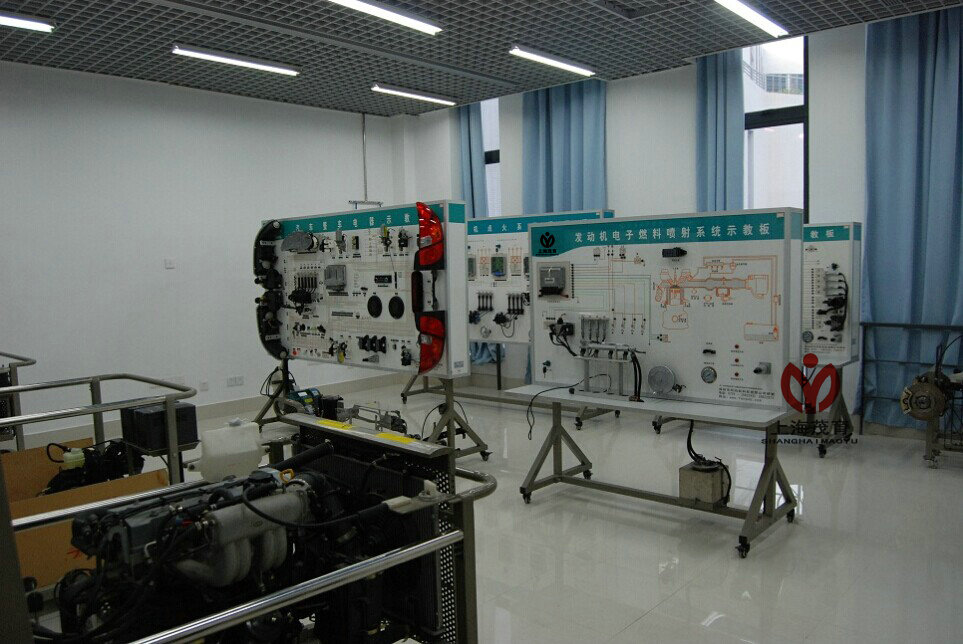 實驗台組成:配置全新汽車空調零部件,包括壓縮機、全部傳感器、執(zhí)行器(qì)與空調線束,高低壓管,冷凝器總成,幹燥罐總成,繼電器盒總成,空調放大器總成,風機總成(chéng),出風口與空調(diào)麵板總成。