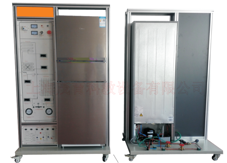 1、實訓設備采用真實的直冷式雙門電冰箱係統,直觀展示了直冷式雙(shuāng)門電冰箱的係統結構、工作原理,可以清楚的看到(dào)製冷循環係統結構(gòu),並(bìng)配有真空壓(yā)力表、溫度(dù)表等(děng),便於教學演示講解及學生對課本知識的(de)理解掌握。