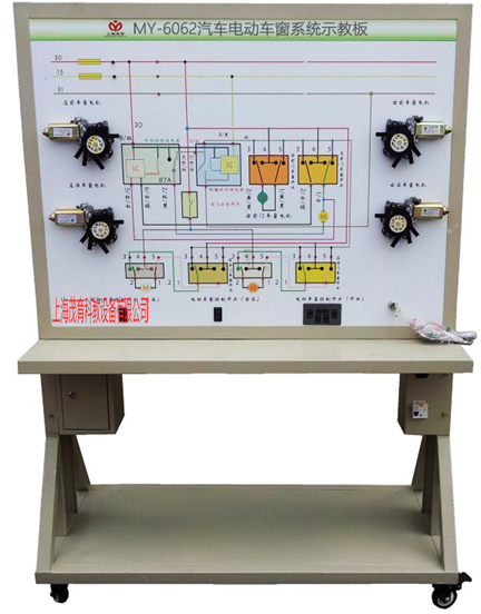 二、汽車電動(dòng)車窗係統示教板,汽車電動車窗係(xì)統實訓設備,汽車電動車窗係統實訓裝置功能特點: