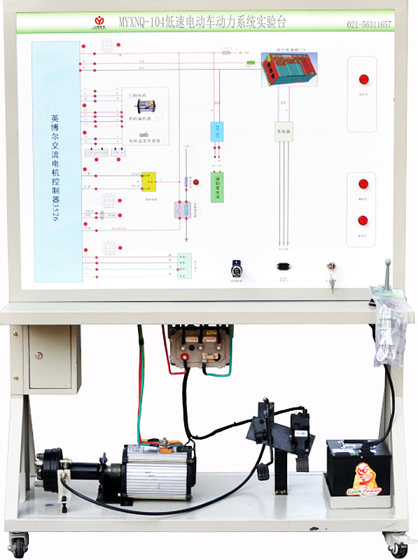 低速電動車動(dòng)力(lì)係統實驗台,低速電動車動力係統實驗設備,低速電動車動力係統實驗裝置采用英(yīng)博爾電控係統製作(zuò),完整展示了汽車電動動力係統,電機控製係(xì)統,監控顯示係統的全部功能。可以動態演示電動汽車動力係統的(de)啟動、低(dī)速行駛、一般行駛(shǐ)、全速行駛(shǐ)、減速行駛和停車六種工(gōng)況下電動機的運行狀態。