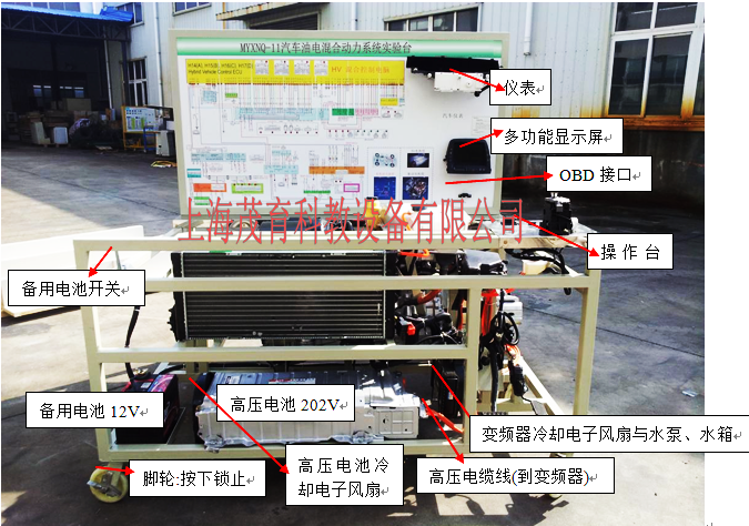 采用豐田普瑞斯1.5L油電混合動力係統總成(包含原(yuán)車電控發(fā)動機、油電混合驅動橋、HV蓄電池等附件總(zǒng)成)、原車油(yóu)電混合(hé)動力係統控製電腦、電子(zǐ)油門加速機構(gòu)、組合儀表、油電混合動力起動運行所有相關的原車附件、故障(zhàng)模擬考核和排除係統、原車電(diàn)路原理圖板及檢測端子、備用60AH大容量蓄電池、大容量不鏽鋼油箱、油電混合動力加速(sù)機構、控製麵板櫃、可移動台(tái)架、台架備用電(diàn)源總開關、原車故(gù)障檢測通訊的診斷座、散熱係統、台架操作說明書、實驗指導書等附件。實驗台上配各傳(chuán)感器及執行器安裝數字顯示表、台架安(ān)裝燃油壓力表與真空(kōng)表、帶鎖止萬向的(de)腳輪(lún)、兩側圓形鋼管護手、台架高溫及轉動等部位加裝防護裝置。