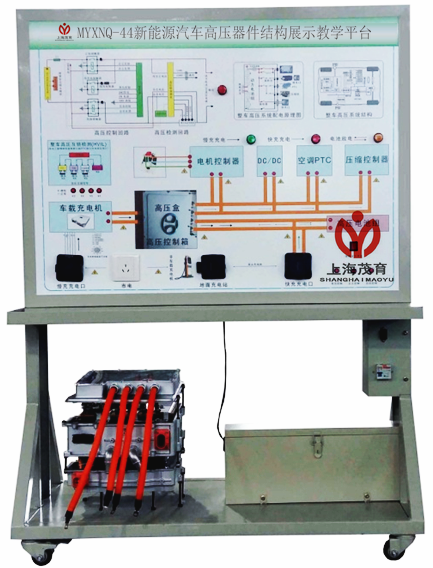 高壓盒、動力電池高壓電纜(lǎn)、電(diàn)機控製器電纜、快充(chōng)線(xiàn)束電纜、慢充線束電纜、DCDC線(xiàn)束電纜(lǎn)、車載充(chōng)電機線束電纜、空調壓縮機線束電纜、空調PTC線束電纜、操作控製台、訓練控製按鈕、原理檢測麵板與結構彩圖。